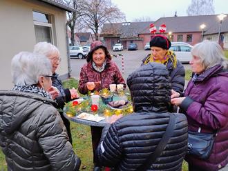 Draußen gab es bei Weihnachtsmarktatmosphäre heiße Getränke und nachdem alle Bäuche gefüllt waren, konnten wir uns gemeinsam mit „Alle Jahre wieder“ und „Oh Tannenbaum“ in Weihnachtsstimmung bringen. Mit eingestimmt hat auch der Besuch, unser neuer Samtgemeindebürgermeister Patrick Rymas, Gleichstellungsbeauftragte Astrid Wonde, Kulturausschussvorsitzender Alfred Senft, Ulrich Binnewies und Frau Karin (vom Sozialverband) sowie Helmut Buchfelder vom Generationennetzwerk Osloß und dem Kreisseniorenbeirat.