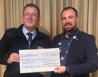 Gemeindebrandmeister Matthias Meier übergab am Ende der letzten Ratssitzung am 19. Dezember eine Sammelspende in Höhe von 961,08 Euro an Samtgemeindebürgermeister Patrick Rymas – mit der Bitte um Weiterleitung an „Paulinchen - Initiative für brandverletzte Kinder e.V.“.