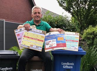 Bernd Klamt mit seinen Familienkalendern, auf denen alle Müllabfuhrtermine auf einen Blick zu sehen sind (Archiv)