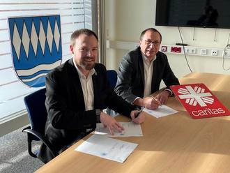 Samtgemeindebürgermeister Patrick Rymas (links) und Caritas-Vorstand Michael Gruber besiegelten ihre Zusammenarbeit