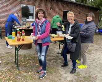 Damit niemandem die Wartezeit zu lang wurde und auch die Geselligkeit nicht zu kurz kam, hatte der SV Bokensdorf für das leibliche Wohl gesorgt. Es gab Schmalz- und Käsebrote, Kaffee und Kuchen, Waffeln, Bratwurst und als besonderes Highlight die beliebten „Bokensdorfer Burger“. Kerstin Kohls verrät, warum sie so beliebt sind: „Sie werden auf der Feuertonne gebraten, alles wird frisch zubereitet.“