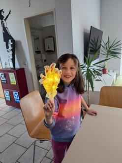 Aus Gips haben wir Geister gefertigt. Da blieben die Hände nicht sauber