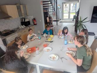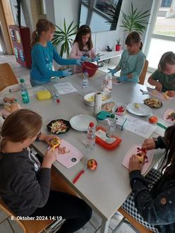 Wir waren in diesem Jahr sehr kreativ, haben Halloween-Deko erstellt, eine Makramee-Eule geknüpft und bunten Schmuck hergestellt, der etwas Farbe in den grauen Herbstalltag bringen soll. Außerdem haben wir viele Äpfel geschält und geschnitten, um leckere Apfelringe und ein „Apple Crumble“ herzustellen. Mit einem Löffel Eis dazu haben wir uns den Nachmittag versüßt. Im Open Treff gab es dann noch die ein oder andere Aktion, die gemeinsam mit den Jugendlichen geplant wurde. (Dazu im nächsten Text mehr.)