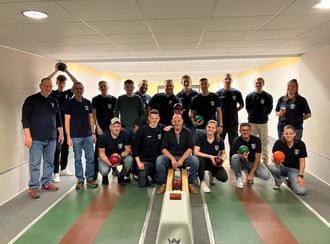 Etwa 20 Kameradinnen und Kameraden trafen sich an einem Freitagabend zu einem gemeinsamen Kegelabend in der Kegelbahn unter dem Restaurant Syrtaki im Tiefgeschoss des Dorfgemeinschaftshauses in Osloß.