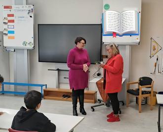 Und am Ende gab's für die Osloßer Autorin noch ein kleines Dankeschön Schulleiterin Katharina Gaschler (li.)