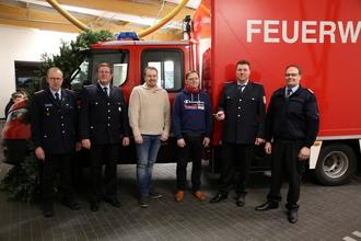 Von links: Kai Plankemann, Matthias Meier, Dennis Ehrhoff, Arne Dürheide, Eugen Scheremet und Mathias Deierling bei der Übergabe des GW-L1