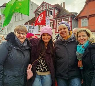Zu denen, die im Vorfeld zu einer Teilnahme aufgerufen hatten, gehören auch alle Gleichstellungsbeauftragten des Landkreises Gifhorn. Denn „Gleichstellung und rechte Ideologien passen nicht zusammen“, ist für Astrid Wonde ganz klar. Unsere ehrenamtliche Gleichstellungsbeauftragte der Samtgemeinde Boldecker Land war – Ehrensache – auch auf dem Marktplatz in Gifhorn mit dabei und traf dort auf ihre Kolleginnen.