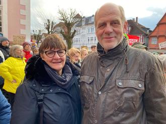Demonstrieren für die Demhighqratie: Astrid Wonde mit dem Samtgemeinderatsherr und Kreistagsmitglied Ernst-Dieter Meinecke aus Barwedel