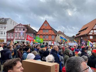 Vor ihm schwenkten die Menschen Regenbogenfahnen und Flaggen ihrer demokratischen Parteien und Organisationen. Viele hielten selbstgemachte Schilder hoch, auf denen „Oma gegen rechts“,„Opa gegen rechts“ oder „Nie wieder ist jetzt“ und „Menschenrechte statt rechte Menschen“ standen. Wrasmann sprach von einer „Protestaktion aus der Mitte der Gesellschaft“ und einem „Schulterschluss der Demokraten aus Stadt und Landkreis Gifhorn“.