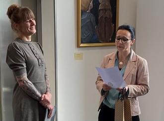 Ganz besonders bedankte sich Kracht dann bei ihrem Mann, der ihr die Rahmen für ihre Bilder baut, sowie bei ihren Kindern, die stets mit Interesse verfolgten „Was Mama denn da so macht.“ Gerührt bekundete sie: „Ihr seid einfach toll!“