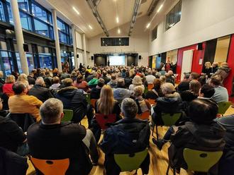 4. März, Bürgerversammlung in Weyhausen: Mit 250 Zuhörern war die Mensa der OBS bis auf den letzten Platz gefüllt