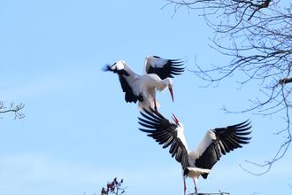 Zwei fremde Störche kämpfen um das Nest von Woody & Wendy