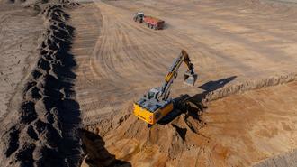 Der Baggerfahrer hat gut zu tun: das Gelände weist einen Höhenunterschied von sechs Metern auf, die ausgeglichen werden müssen