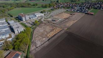 Die Erdarbeiten bilden für knapp zwei Monate den Auftakt zu einer eineinhalb- bis zweijährigen Bauphase für die Ausgestaltung und Bebauung des 42.000 Quadratmeter großen Areals westlich der B248 zwischen dem nördlichen Ortsausgang und dem Firmengelände von Bertrandt.