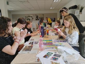 Mit Dotwork (eine Technik, bei der Bilder und Ornamente aus Punkten entstehen) haben wir Eier und Osterhasen aus Styropor verschönert, auch haben wir Hasengirlanden hergestellt. Zusätzlich wurde an diesem Tag die neue Küche in der TRUDE (Treff unter den Eichen) eingeweiht.