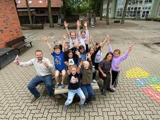 Zuerst wollten sie nur ein paar bunte Bilder malen, um damit am „Kreativwettbewerb“ anlässlich des 75. Geburtstages unseres Grundgesetzes teilzunehmen. Aber dann kam Schulleiterin Gabriella Di Biase in der letzten Sekunde auf die tolle Idee, doch lieber einen Videobeitrag zu produzieren – und deshalb wurden 13 Schülerinnen und Schüler der Grundschule Weyhausen jetzt nach Hannover eingeladen! Am 12. Juni durften sie mit dem Ministerpräsidenten und der Kultusministerin im Schauspielhaus frühstücken, weil ihr tolles Video nämlich einen von zehn Preisen in dem landesweiten Wettbewerb gewonnen hat!
