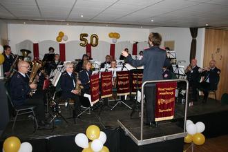 Ortsbrandmeister Kai Plankemann, der eingangs zusammen mit dem Aktiven Torsten Wegener die Gäste am Saaleingang empfangen hatte, ist mächtig stolz auf seinen Feuerwehrmusikzug. „Ich sehe seit Jahren, mit welcher Spielfreude die Feuerwehrmusikerinnen und Feuerwehrmusiker dabei sind. Heute aber zum 50-jährigen Jubiläum haben sie sich selbst das schönste Geschenk gemacht. Dieses Jubiläum ist mehr als gelungen.“