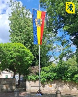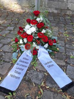Am Fuße des Fahnenmastes erinnerten Blumen an den verstorbenen Landrat