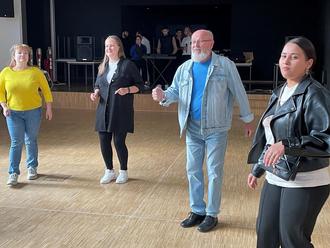 Erwin Freiter (3. von rechts) animierte die Gäste zum Tanzen