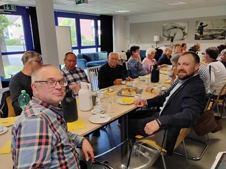 Am 6. Mai durften wir beim Seniorenkaffee besonderen Besuch begrüßen: Unseren Samtgemeindebürgermeister Patrick Rymas sowie Ratsherr Alfred Senft. Beide mischten sich unter die Gäste und nahmen auch die neue Küche in Augenschein, die seit kurzem im Einsatz ist.