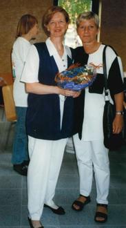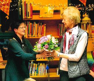 Zur Einweihung der Bücherei am 24. August 2000 erhielt Christel Röpke einen Blumenstrauß