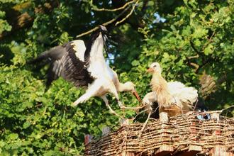 Na sowas! Da zieht man Kinder groß – und dann wird das eigene Nest zu klein und man muss selber ausziehen. So ungefähr läuft es gerade in der Neuen Straße bei Familie Storch ab.