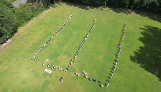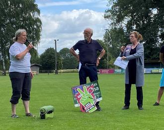 100 Teilnehmende der „Tour de Natur“ formierten sich kürzlich gemeinsam mit Tappenbecker Bürger/innen auf dem Tappenbecker Sportplatz zum Protest gegen die geplante A 39
