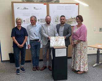 „Ein Entwurf kam tatsächlich von einem Büro in Madrid“, staunt Bauamtsleiter Arthur Matis, der das Projekt betreut und ebenfalls zu den Preisrichtern zählte. Der erste Preis jedoch ging an den Architekten Tom B. Förster vom Büro Kummer Lubk und Partner mit Sitz in Erfurt sowie den Landschaftsarchitekten Thomas Redlich (Grün+Bunt Landschaftsarchitekten) aus Berlin für ihren gemeinsamen Entwurf.