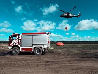 Der Mittwoch war geprägt von praktischer Ausbildung: Mit Hilfe eines Tiefbrunnens wurde Wasser entnommen, über Tanklöschfahrzeuge im Pendelverkehr transportiert und in den Flexfit-Behälter eingespeist – bereit für die Hubschrauber. Am Donnerstagvormittag stand schließlich die kombinierte Brandbekämpfung auf dem Plan: Während die Feuerwehrfahrzeuge die Technik „Pump and Roll“ erprobten, unterstützten die NH-90 die Übung, indem sie Wasser aus alternativen Quellen wie Seen entnahmen und aus der Luft abgaben.