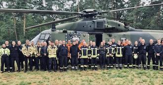 Nach der Anreise am Dienstag erhielten die Feuerwehrkräfte umfassende Einweisungen durch die Bundeswehr. Neben Sicherheit und Geländekunde standen dabei auch Grundlagen der Luftunterstützung und taktische Vorgehensweisen im Mittelpunkt. Ein besonderes Highlight für die Teilnehmenden war ein Erfahrungsflug in zwei NH-90-Transporthubschraubern des Transporthubschrauberregiments 10 „Lüneburger Heide“ aus Fassberg, das die Maschinen täglich für die Übung zur Verfügung stellte.