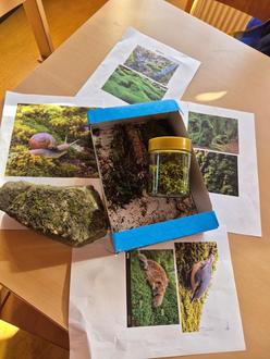 Um das Gelernte zu vertiefen, wurde die Gruppe kurzerhand zum Labor. Die Kinder sammelten vorsichtig Proben, um ein eigenes Experiment zu starten: Moos im Glas.