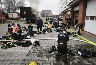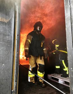 Los ging es am Vormittag jeweils mit einem Theorieteil, bevor das schnelle, aber sorgsame Anlegen der persönlichen Schutzausrüstung (PSA) sowie von Lungenautomaten und Druckluftflaschen geübt wurde. Nachdem die hochtemperaturbeständige Schutzausrüstung angelegt und die Atemluftversorgung hergestellt war, gingen die Gruppen unter Anleitung und Aufsicht der Brandexperten in den bereits vorbereiteten Brandübungscontainer. In diesem Spezialaufbau, welcher größtenteils aus dickem Schiffsstahl besteht, ist eine zimmergroße Brandkammer nebst Metalltür installiert. Diese wird im Übungsverlauf zunächst mit einem Entstehungsbrand angefeuert. Dazu wird unbehandeltes Holz angezündet, die Rauchgasentwicklung beobachtet und die jeweiligen Brandtemperaturen mit Wärmebildkameras gemessen. Im Gegensatz zu einer gasbetriebenen Übungsanlage können somit Rauchgase erzeugt werden, wie diese auch bei realen Brandereignissen vorkommen, berichtet Organisator und Gemeinde-Atemschutzbeauftragter Nils Jungermann aus Rühen.