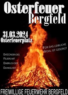 Am Ostersonntag, den 31. März 2024, wollen wir, die Freiwillige Feuerwehr Bergfeld, zum Einbruch der Dunkelheit das Osterfeuer für Euch entzünden.