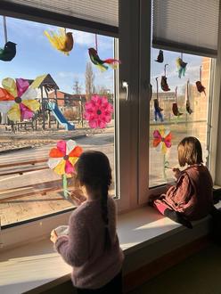 Auch im Gruppenraum entstanden mit viel Kreativität bunte Fensterbilder.