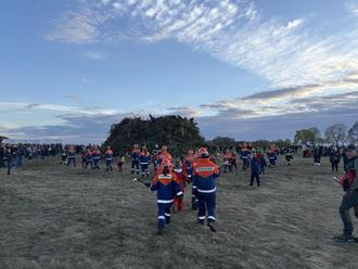 Nach einer kurzen Begrüßung durch den stellvertretenden Ortsbrandmeister Nils und Klaus begaben sich alle Teilnehmer zum Osterfeuerplatz, wo bereits viele Bürger gespannt auf das Anzünden warteten. Der Platz war gut gefüllt mit großen und kleinen Gästen.
