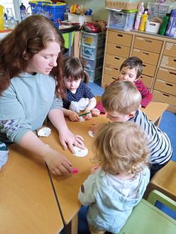 Liebevoll und freundlich ging Frau Wurft zu jedem Kind, zeigte das Farbergebnis in den Gläsern und die Kinder staunten.