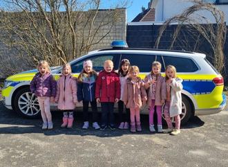 Im März bekamen unsere Schulis Besuch von der Polizei. Nach vielen interessanten Informationen zum Beruf „Polizist“ fand eine Theoriestunde zum Thema „Sicherer Schulweg“ statt. Die Schulis haben dabei gelernt, welche Gefahren im Straßenverkehr dabei lauern, wie man sicher eine Straße überquert und welche Gefahren es an der Bushaltestelle und an Ein- und Ausfahrten gibt. Anschließend wurde bei einem Spaziergang durch das Dorf die Theorie praktisch geübt.