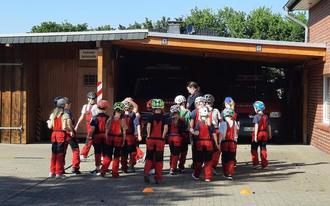 Anfang Juni konnten wir Niklas vom Rettungsdienst Haerting bei uns im Gerätehaus willkommen heißen. Mitgebracht hatte er einen Rettungswagen und einiges Erste Hilfe Material. Niklas zeigte den Kindern u.a., wie ein Druckverband angelegt wird, wie die Rettungssanitäter einen gebrochenen Arm schienen und wie die stabile Seitenlage geht. Sehr interessant war auch die Erklärung über das Legen eines Zuganges. Niklas zeigte uns die dazu benötigten Materialien und erzählte, dass viele Menschen Angst vor den Nadeln haben, aber der Zugang selbst gar keine Nadel ist, sondern nur ein kleiner Schlauch, der im Arm stecken bleibt. Die Kinder stellten Niklas viele Fragen, die er alle beantwortete. Natürlich konnten sich die Kinder dann auch den Rettungswagen einmal von innen anschauen und die Trage sowie den Tragestuhl ausprobieren. Wir hätten den Dienst locker um 1 bis 2 Stunden verlängern können, so interessant war das alles. Aber nach 90 Minuten warteten draußen die Eltern.