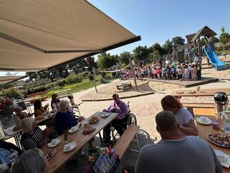 Mitte Juni bei strahlendem Wetter kam die Seniorenresidenz Drömling aus Rühen zu Besuch in den Pfiffikus. Zusammen verbrachten Jung und Alt einen fröhlichen Vormittag, mit vielen herzerwärmenden Begenungen und fröhlichen Liedern der Kitakinder. Die Eltern die Kitakinder sorgten für das leibliche Wohl und spendierten Kuchen und Kaffee, was die gute Stimmung noch verstärkte. Alles in allem war es eine schöne Zeit. Bis zum nächsten Mal!