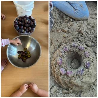 Noch nicht genug von der Kuchenbäckerei wurden in der Sandkiste noch weiter Sandkuchen gebacken.