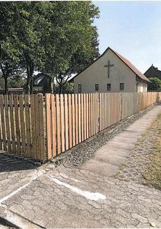 Es wurde festgestellt, dass der Zaun nicht mehr reparabel war. Es wurde versprochen, den Zaun in diesem Jahr zu erneuern. Das geschieht momentan. 1991 wurde der Zaun mit der ersten Rentnerband auf Kosten der Gemeinde Rühen (damals noch zuständig!) gebaut. Zweimal in den 33 Jahren wurden die Latten von der Rentnerband gestrichen und einige Latten erneuert.