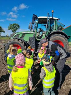 Richtig interessant war auch der Trecker den wir uns ganz genau anschauen durften. Ganz schön hoch war das wenn wir in dem Trecker saßen.