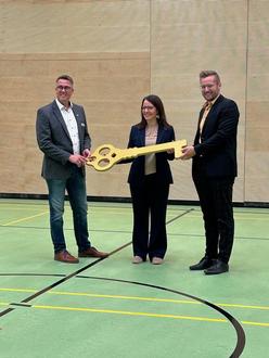 Außerdem wurde der Gebäudekomplex im Rahmen einer offenen Besichtigung allen interessierten Bürgerinnen und Bürgern zur Begehung geöffnet. Für die Schule stellt die Halle einen absoluten Meilenstein dar, aber auch der Vereinssport und somit alle engagierten und sportlich Tätigen können von der neuen Sporthalle profitieren.