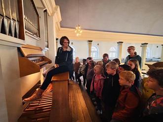 Am Dienstag, dem 24.09.24 durfte die Klasse 2b im Anschluss an das Orgelkonzert noch eine Weile in der Kirche bleiben. Im Unterricht hatte diese Klasse bereits über den Innenraum von Kirchen gesprochen und viel gelernt. Nun durften die Gegenstände in der Liebfrauenkirche wiedergefunden werden: Taufbecken, Altar, Liedertafeln und vieles mehr. Frau Dr. Nostheide gab uns zusätzlich noch einen kleinen Einblick in das Spielen an der Orgel, der „Königin der Musikinstrumente“.