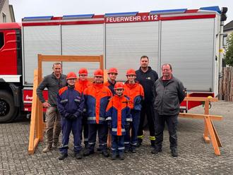 Mit großer Freude übergab Jens Groeneveld und Arndt Leusmann die neue Wettkampfbahn an die Jugendfeuerwehr Ehra-Lessien, die in diesem Jahr ebenfalls ihr 50-jähriges Bestehen feiert.
