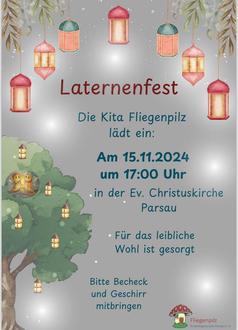 Die Kita Fliegenpilz lädt alle ganz herzlich zu unserem diesjährigen Laternenfest ein.