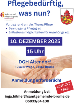 Im Rahmen der Sozialkoordination werden zukünftig regelmäßig kostenlose Vorträge vor Ort zu zentralen Themen für die Bürgerinnen und Bürger der Samtgemeinde Brome organisiert.