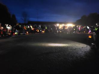 So machten sich viele große und kleine Füße auf den Weg zum Sportplatz, um ihr kleines Laternenfest zu feiern. Ausgestattet mit Laternen, Taschenlampen oder Stirnlampen war die Dunkelheit nur noch halb so dunkel. Selbst die Allerkleinsten hatten an ihren Kinderwagen Lichterketten oder Mama/Papa hatte sie sich einfach umgehängt. Der Fantasie waren keine Grenzen gesetzt.