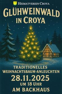 Am 28. November 2025 ab 18 Uhr lädt der Heimatverein Croya zum traditionellen Weihnachtsbaum-Anleuchten in den Glühweinwald vor dem Backhaus ein. Für das leibliche Wohl ist bestens gesorgt.