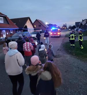 Mit der bunten Lichterkette, eine Leihgabe von einer Elektrofirma, konnte unser Außengelände wieder strahlen. Um 16:30 Uhr trafen sich die Kinder mit ihren Eltern auf dem Außengelände der Kita. Nach der Begrüßung sangen die Kinder ihr neu eingeübtes Laternenlied „Lalilalu Laterne.“ Danach ging der Laternenumzug auch schon los. Für die nötige Sicherheit sorgte die Feuerwehr Brechtorf. Musikalische Unterstützung beim Umzug, bekamen wir von 2 Trommlern des Schützenvereins Brome.
